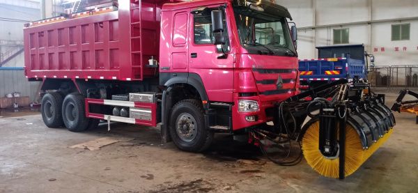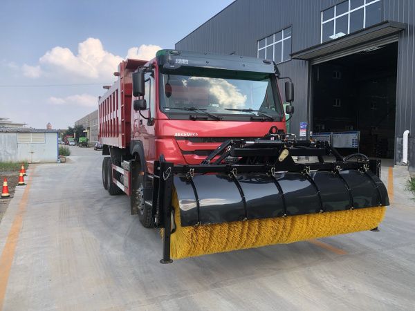 滾刷機構與車底盤、裝載機采用快速鏈接拆裝在3分鐘內完成,可與前置雪鏟互換,滾刷為噴漆處理,具有耐腐蝕特性。操控系統通過PLC控制,具有強制下壓及對地壓力自動調節功能,適應各種公路、機場路面。